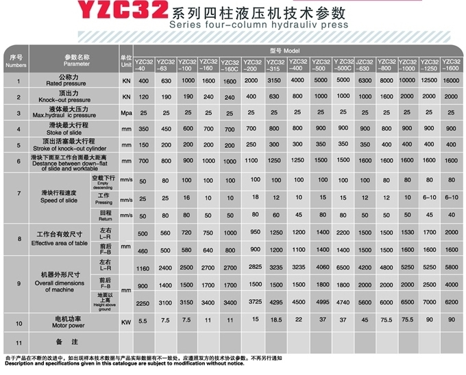 YZC32系列四柱液壓機